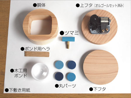 ご注文の際に、カラー、オルゴール曲名、数量、お名前とお届け先住所(電話番号含む)、をお伝えください。